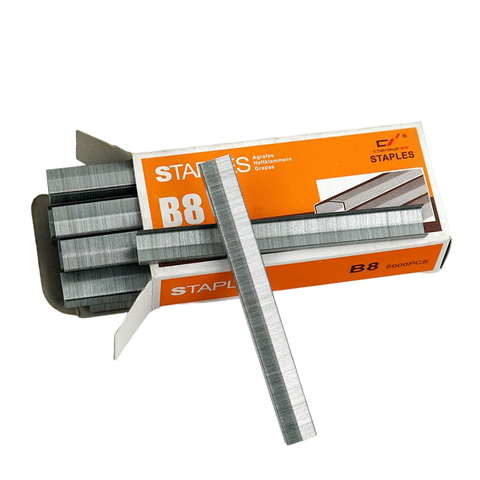 สำนักงานจัดหาพิเศษสีเงินชุบสังกะสี B8เย็บกระดาษโลหะสแตนเลสหมุดหลัก